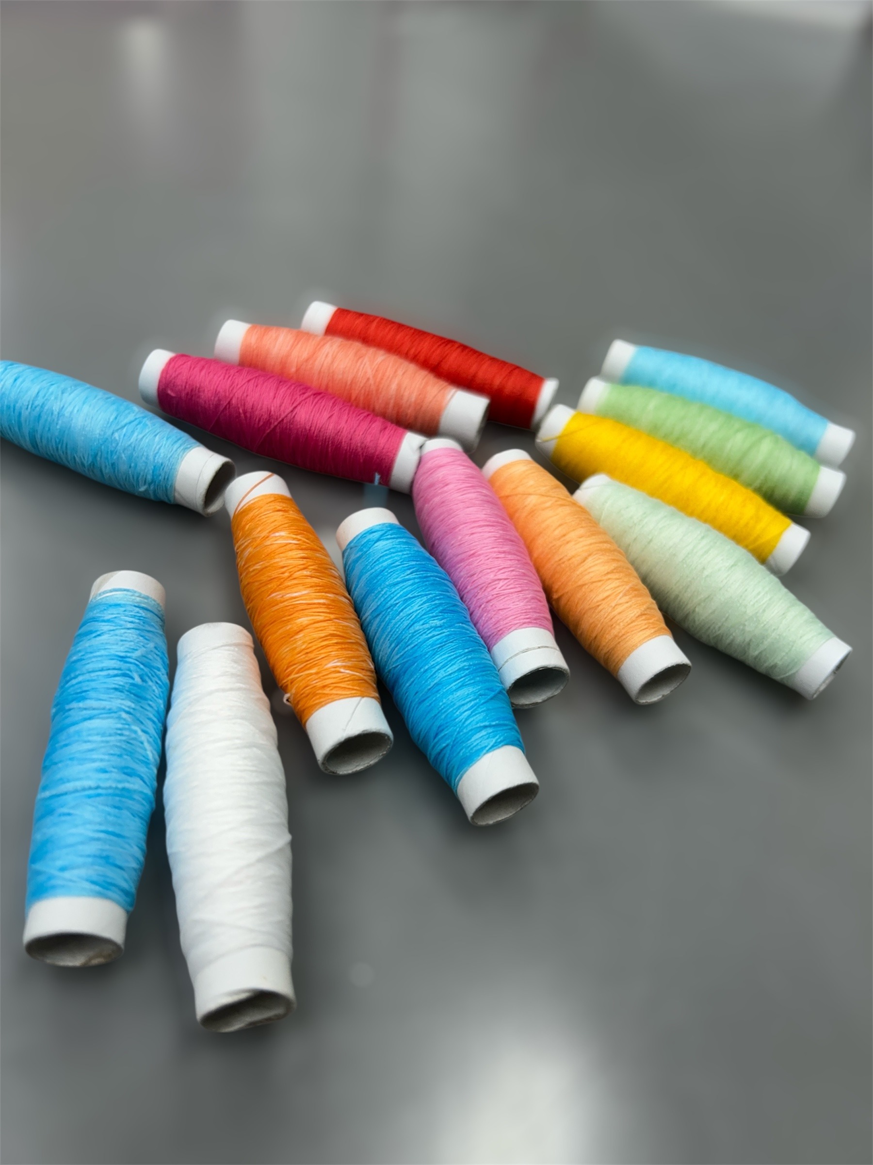 そして、自社にて撚(よ)りの加工を行った糸を使ったオリジナルワークを行います。