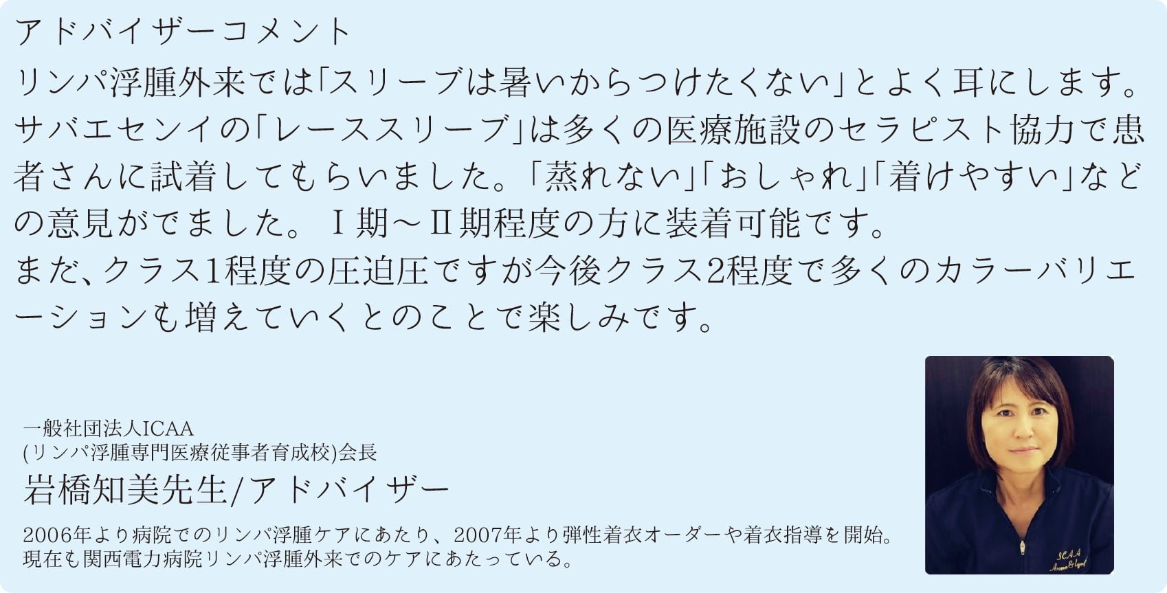 一般社団法人ICAA会長・岩橋知美先生をアドバイザーに迎え、