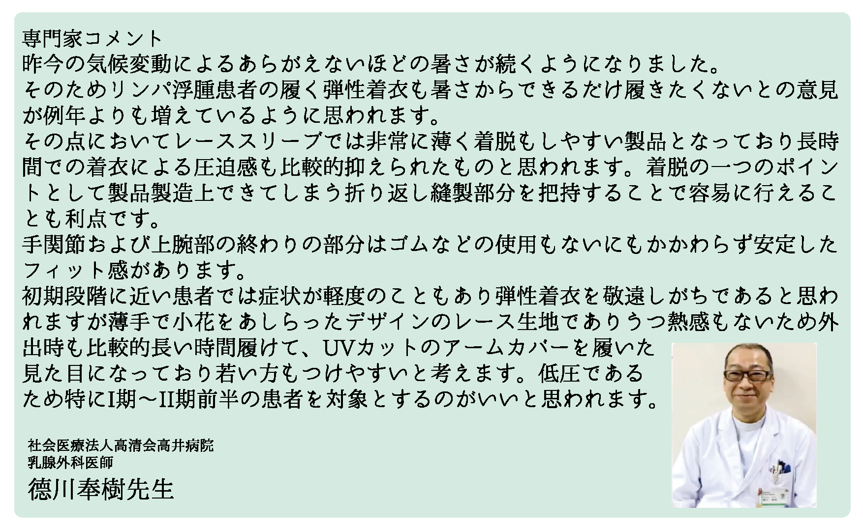 Lace Sleeve(レーススリーブ)は、リンパ浮腫の方へのケア用品として開発されたアームスリーブです。